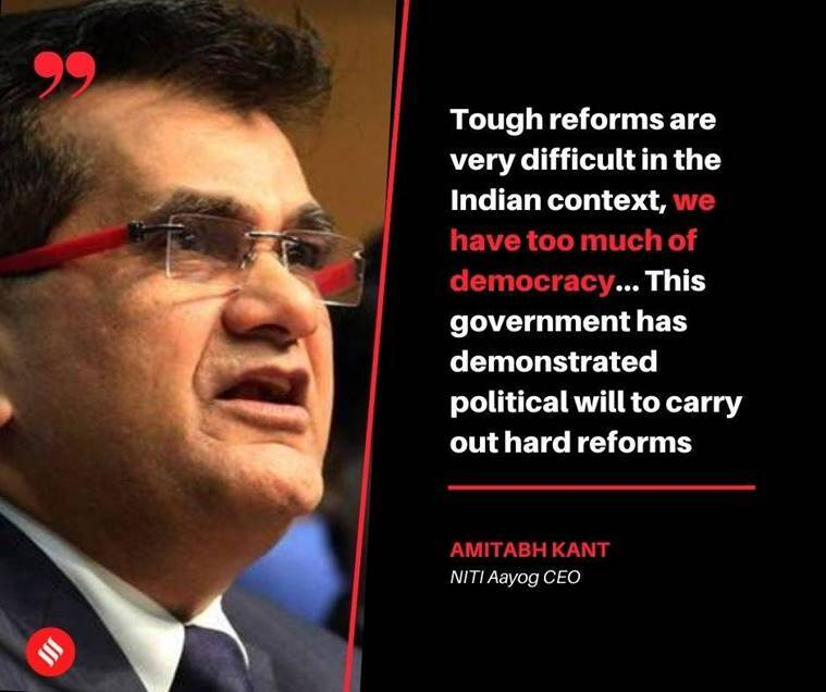 What is the problem of these Liberals? They are bigger cry babies than Neha Kakkar. They are creating a new controversy, Mr Amitabh Kant is right He says, 'Too much democracy' hampers strong visionary reforms. Absolutely correct, you liberals and urban naxals have a problem with everything. Niti Aayog CEO has big plans for the country, he wants to lead India to a 5 trillion dollar economy 'Too much democracy' is our biggest enemy after Pakistan. We have democracy because of bad leaders like Nehru, he gave 'too much azaadi' to Kashmiris and today, everything is normal after the abrogation of Article 370 and "internet shutdown". But liberals think this is the murder of democracy in Kashmir.